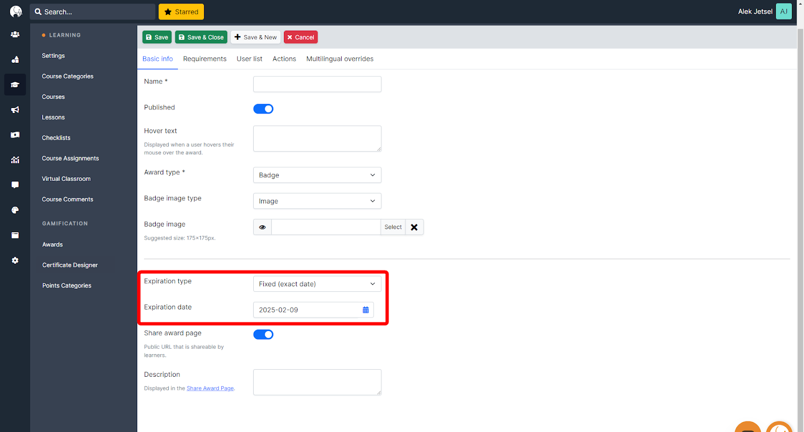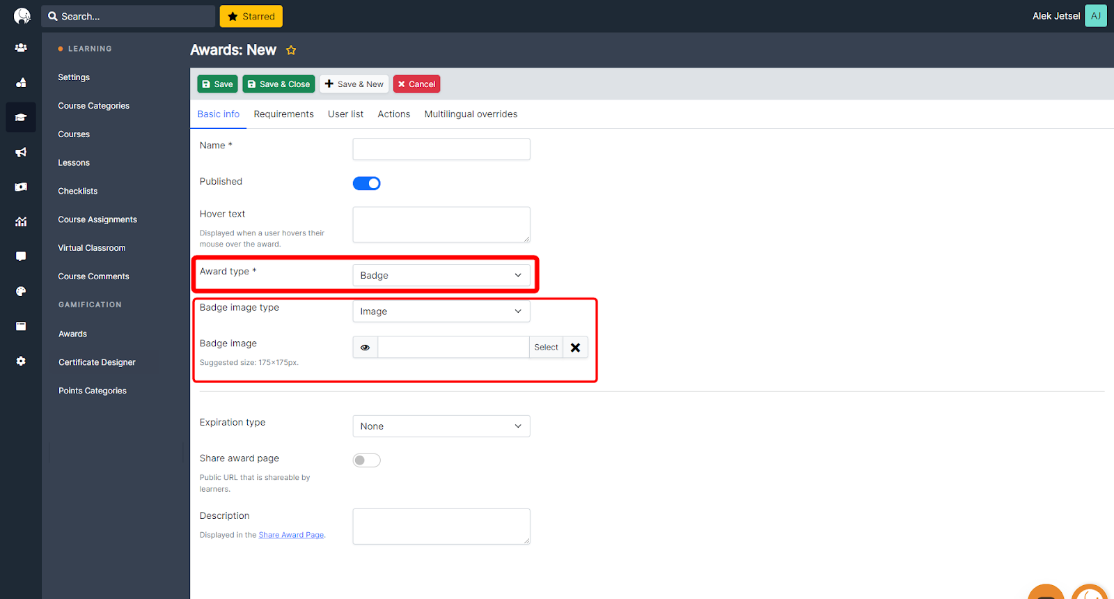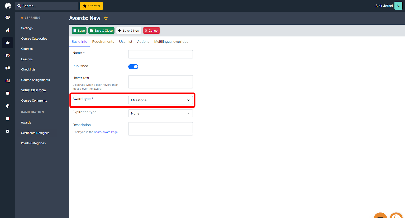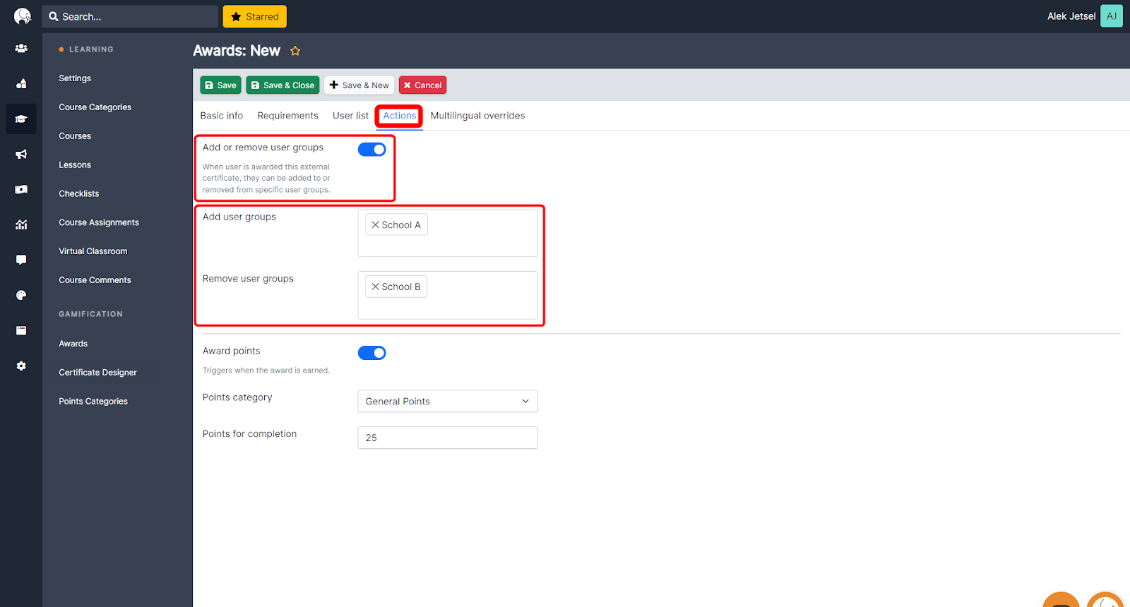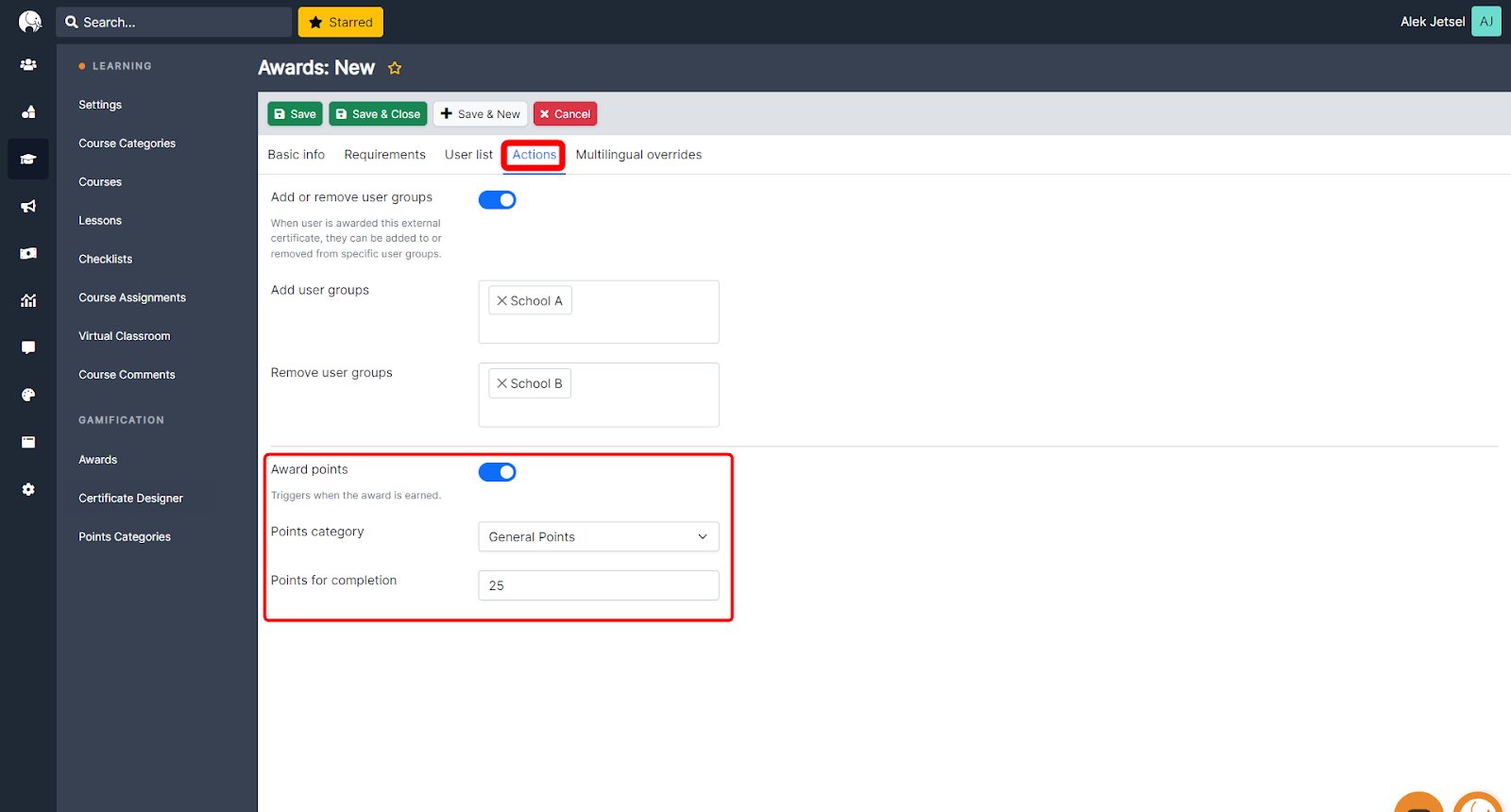Awards (and other gamification tools such as Points) also allow Administrators to authenticate learning experiences in the LMS.