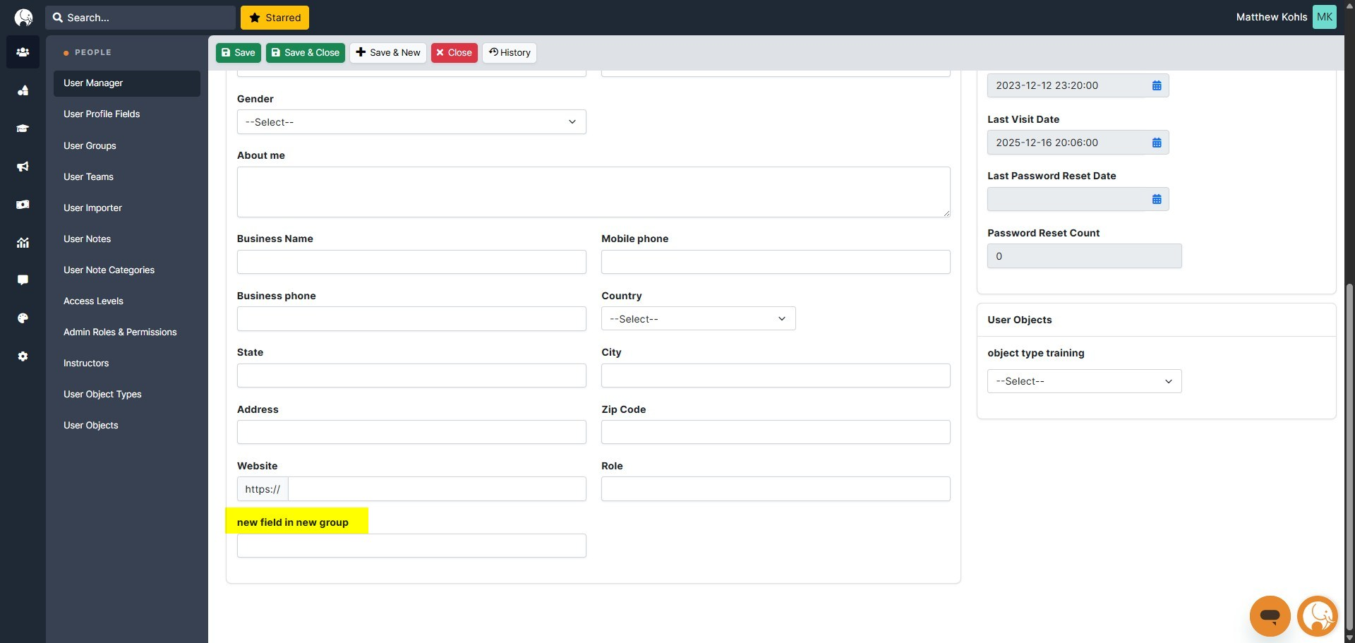 Create a New Profile Field