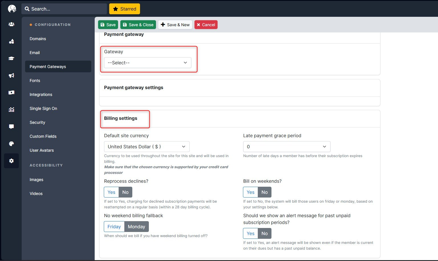 Adding a Payment Gateway in Configuration makes it easy to apply collections directly to a Course, Subscription, Brand, and more.