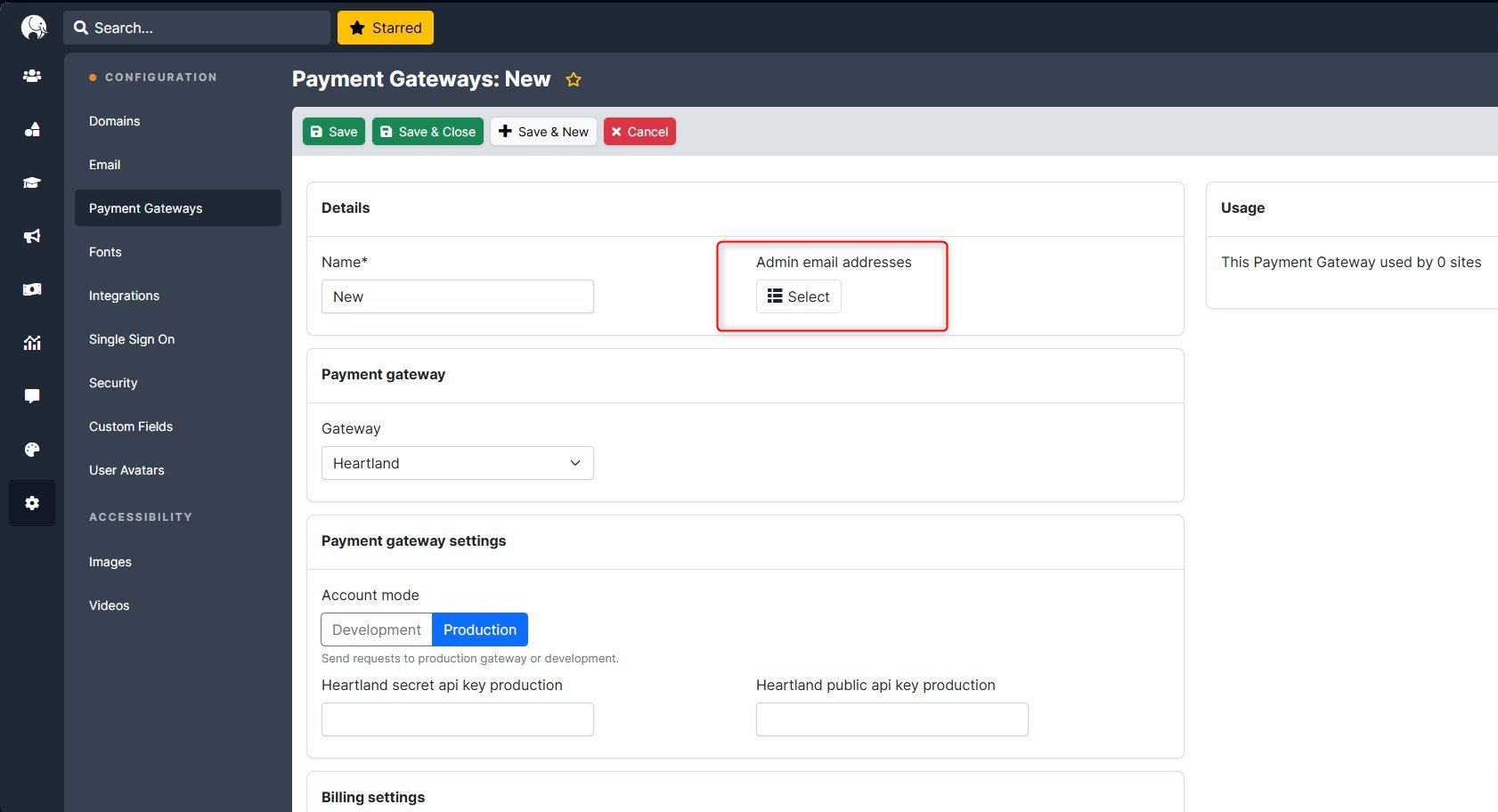 Go to Configuration > Click Payment Gateways > Click Add
