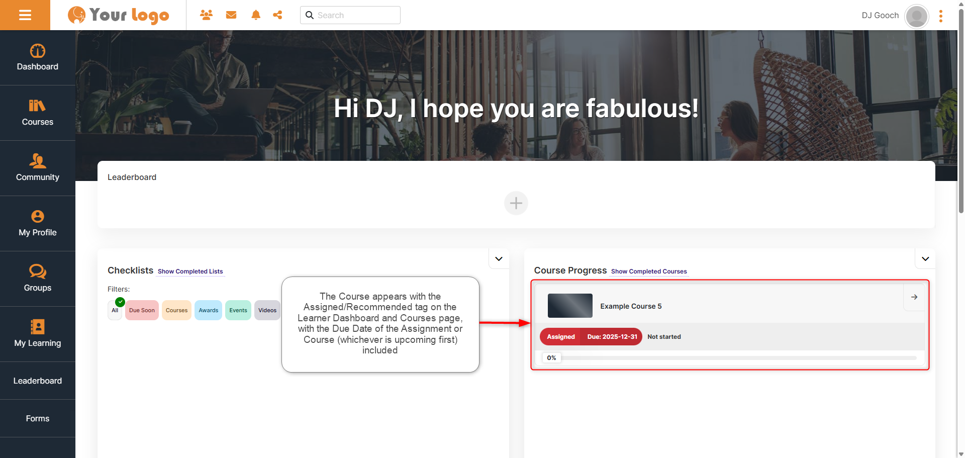 It’s important to guide Users through Courses, helping them know exactly what needs to be done next. Course Assignments allow Admins to highlight recommended or assigned Courses directly to Users.