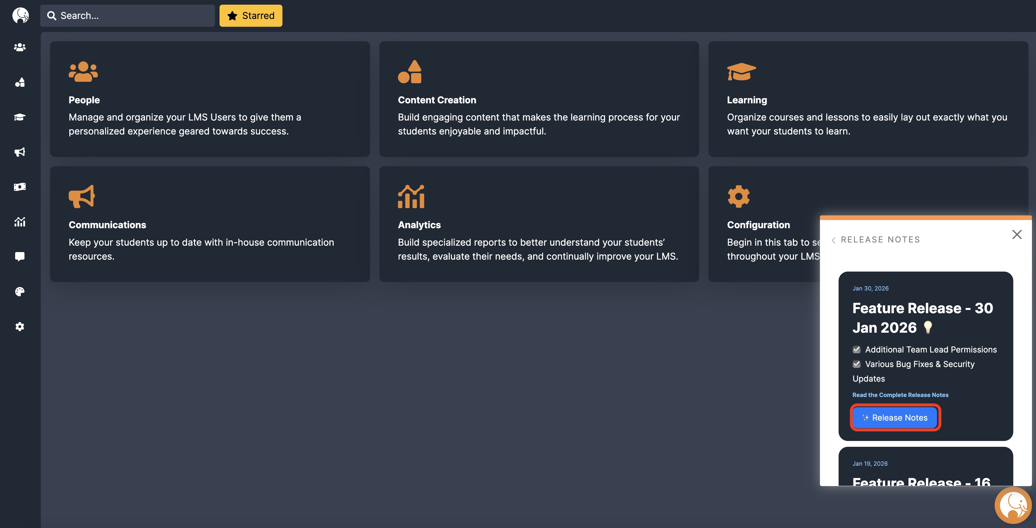 In the Release Notes option, recent Feature Releases are listed with a link to the applicable Release Notes page in our Help Center.